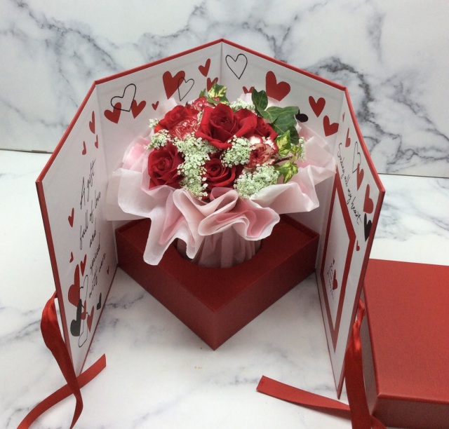 TOP 3000円~ 母の日・父の日ギフト ひらく花箱 ◆送料税込3900円◆ 母の月限定 赤い箱を開けると、思わず笑顔がこぼれる特別なギフト。 ドレスのように重なった3種類のフリルラッピングで、ふんわり華やかさをプラスしたそのまま飾れる花束(ドレスバージョン)が箱の中からふわっと広がります。 箱に入れたままそのまま飾れるので、手軽に楽しめて贈り物にもぴったりです。 ※バラの色は赤・ピンクをメインにお作りします。仕入れ状況により他の色が入る場合がございます。 ひらく花箱 ◆送料税込3900円◆母の月限定 (本州以外は別途500円) 価格: ¥3,900 (税込) 販売期間: 数量: 個 在庫: 15個 在庫 15個 返品についての詳細はこちらをご覧ください バラをメインにした花束を、栄養剤を入れた容器に入れ、そのままラッピングしてあります。