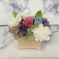 プリザーブドフラワー ベージュ陶器(ピンク・白・青)◆407-05