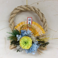 しめ縄リースに、アーティフィシャルフラワーをあしらったお正月飾りです。