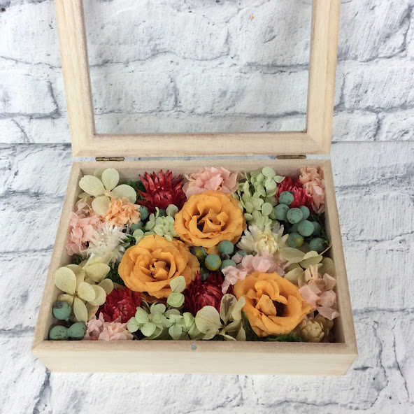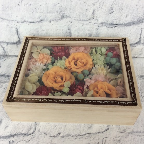 プリザーブドフラワー木箱(オレンジ)◆501-19 送料込!