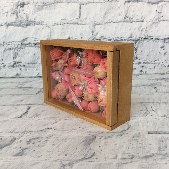 プリザーブドフラワー木箱(ピンク)◆502-36 送料込!