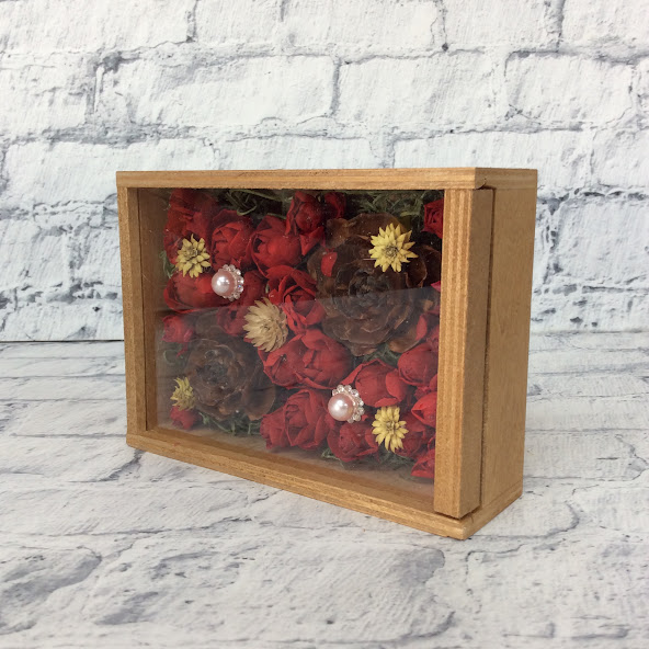 プリザーブドフラワー木箱(赤)◆502-37 送料込!