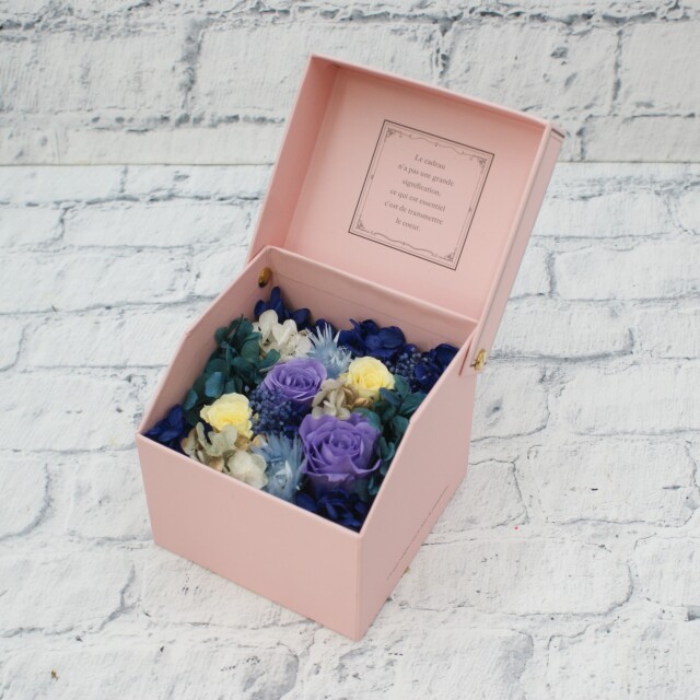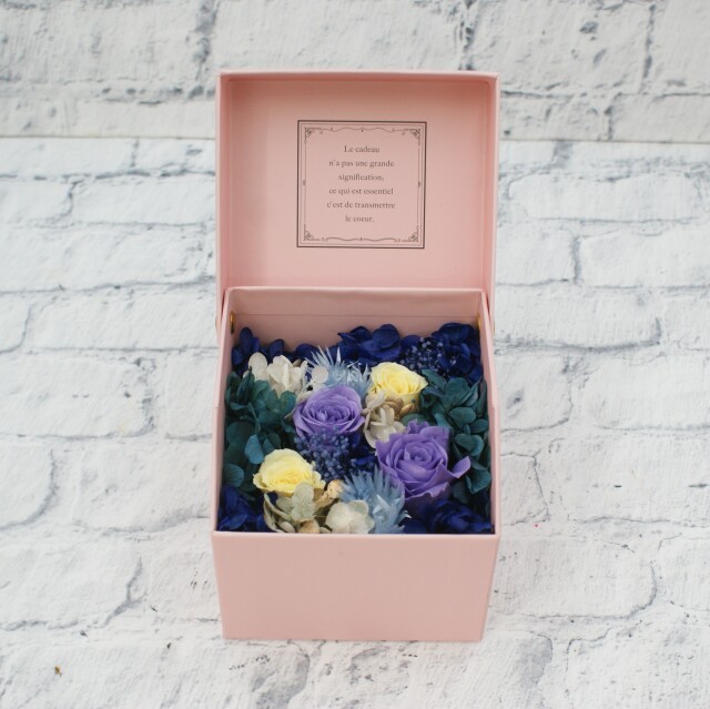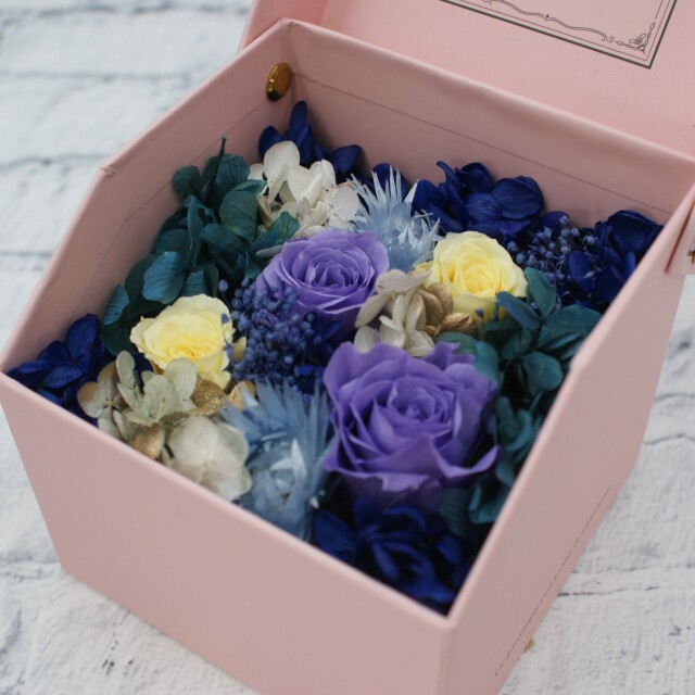 プリザーブドフラワー箱入り(紫・黄色)◆508-02 送料込!