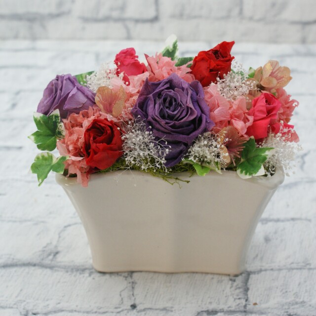 プリザーブドフラワー白陶器(紫・ピンク)◆602-03 送料込み
