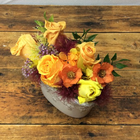 プリザーブドフラワー白陶器(オレンジ)◆707-16 送料込み